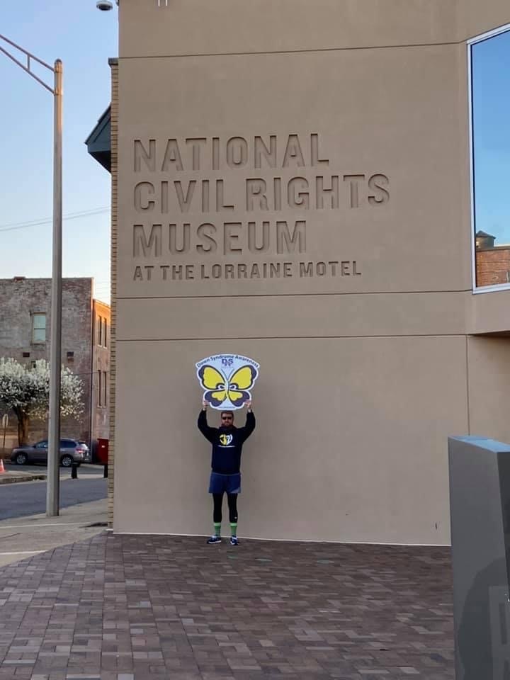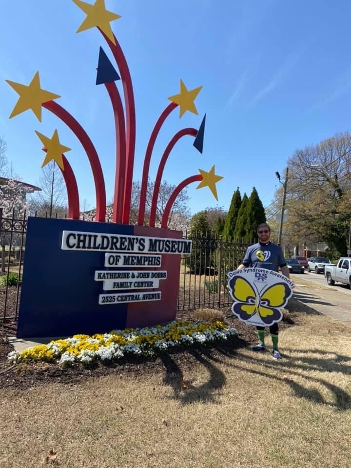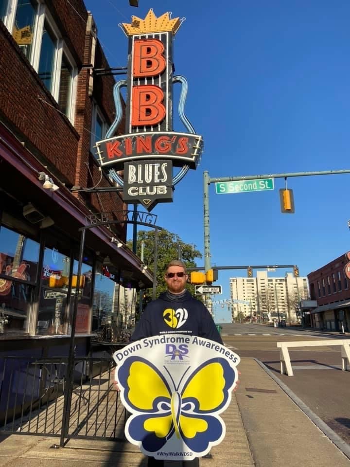 Each year on March 21st, World Down Syndrome Day, Josh Greer walks for 14+ hours across the Memphis area, trekking 21+ miles & formally stopping at 21 well-known Memphis attractions to take pictures with supporters, self-advocates, sponsors, news outlets, local politicians/celebrities/athletes & many others. At each stop, Josh raises the global symbol for Down syndrome, a blue & yellow butterfly, to take a picture in support of Down Syndrome awareness & inclusion!
